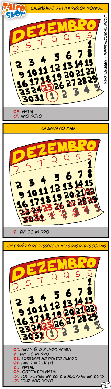 O Natal tá chegando e mais uma vez eu tô aqui esperando pra ver se o Papai Noel aparece e me dá algum presente… há anos que isso não acontece! Tô começando a acreditar que isso é história da carochinha! Bom, enquanto ele não chega, bora curtir 15 tirinhas que bombaram nessa última semana, que seria a última de todos os tempos? É, o mundo não acabou e o Joãozinho aprontou mais uma das suas: